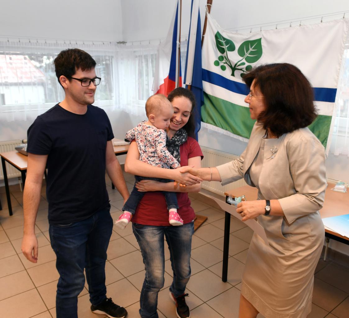 Úvodem všechny děti spolu s jejich rodiči, babičkami, dědečky, tetičkami a strýčky přivítala paní starostka Lenka Kadlecová. V krátké řeči zdůraznila důležitost příchodu nových dětí pro budoucí vývoj naší obce.