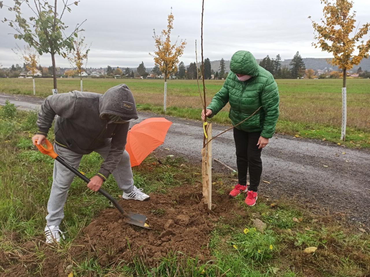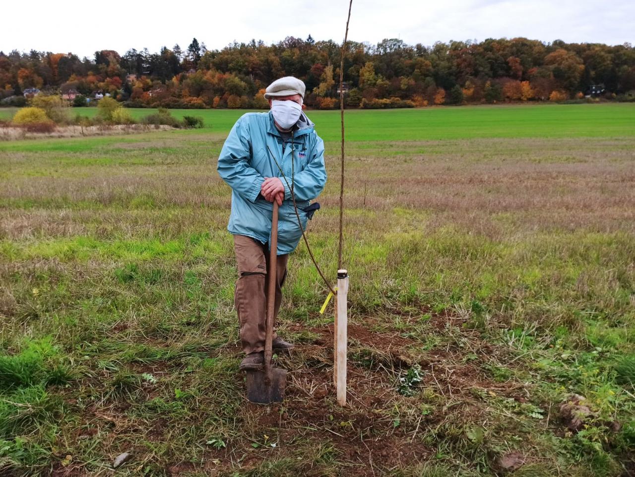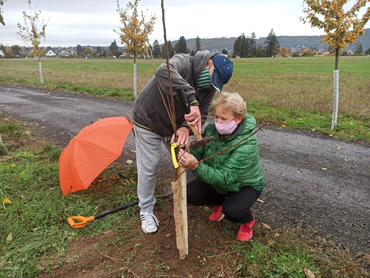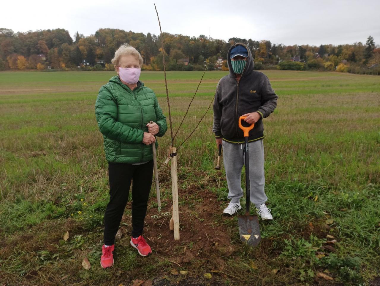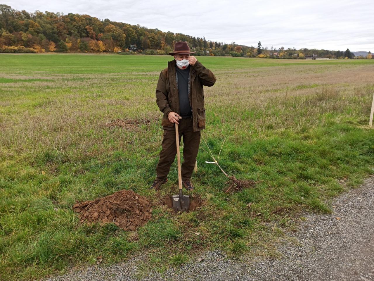 Na výsadbu dohlížel certifikovaný arboretista Jiří Řežábek, který bude pomáhat i s následnou péčí. Akce se povedla, i když jsme museli dodržovat přísná hygienická opatření. Výsadba probíhala v předem určených časových úsecích tak, abychom eliminovali nežádoucí kontakty. Stromy sázeli vždy jen členové jedné rodiny či osoby si navzájem blízké. Sice nás začátkem i koncem sázení provázel déšť, ten však alespoň podpořil uchycení stromků. Další zálivku obstarali techničtí pracovníci úřadu. 17. listopadu se sešlo dalších šest zájemců, na které se nedostala třešeň, a vysadilo zde jabloně. Zbývající jabloně, hrušně a javory pak vysadil pan Řežábek sám. Celkem bylo v rámci podzimní výsadby zasazeno 60 stromů.