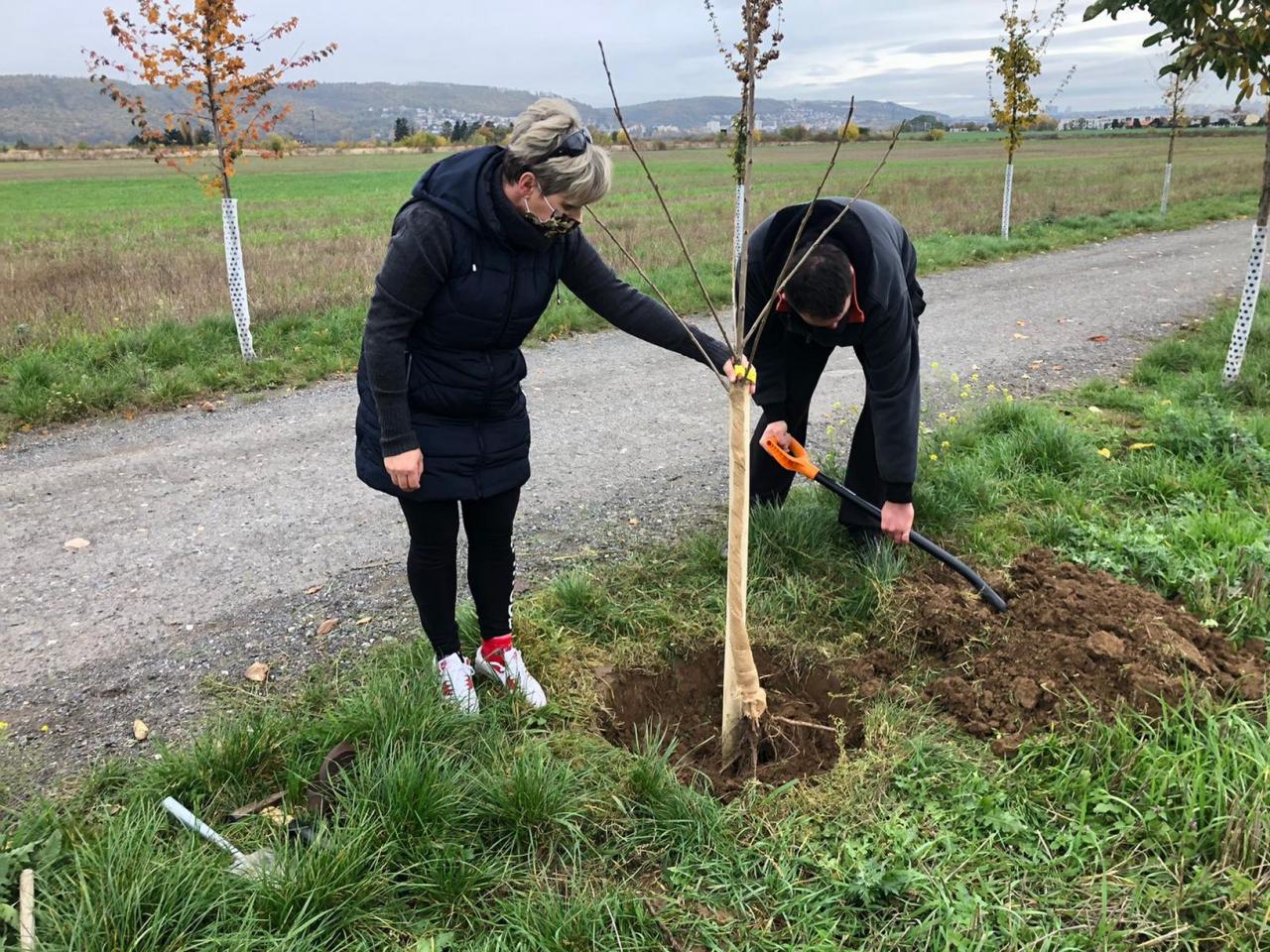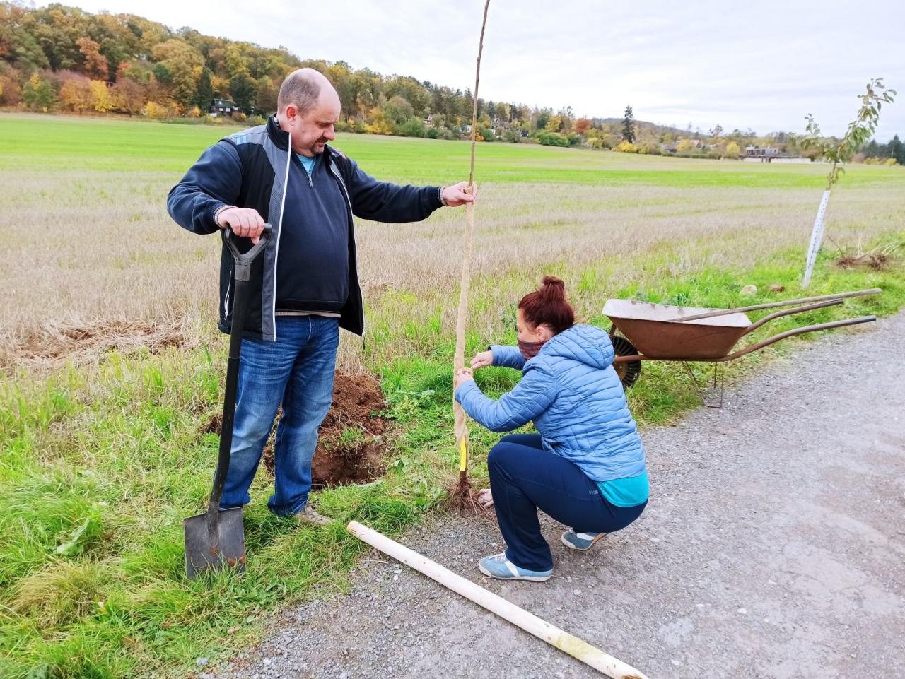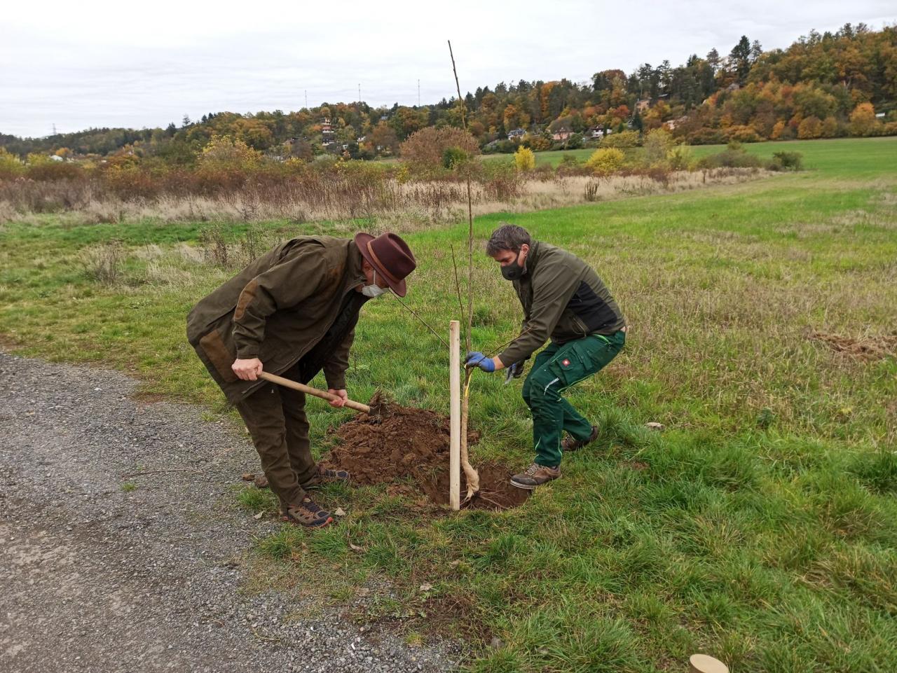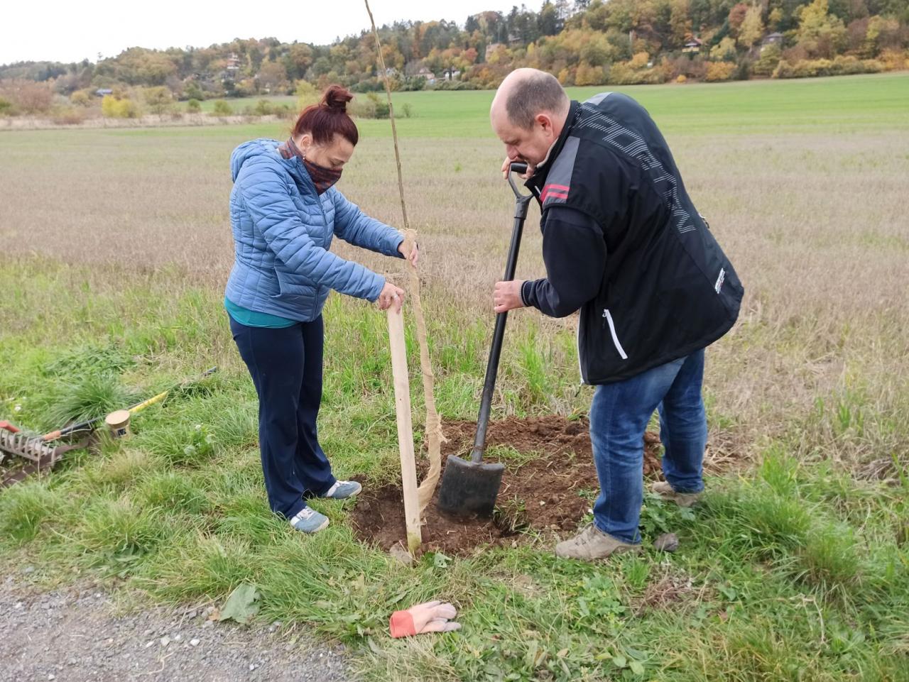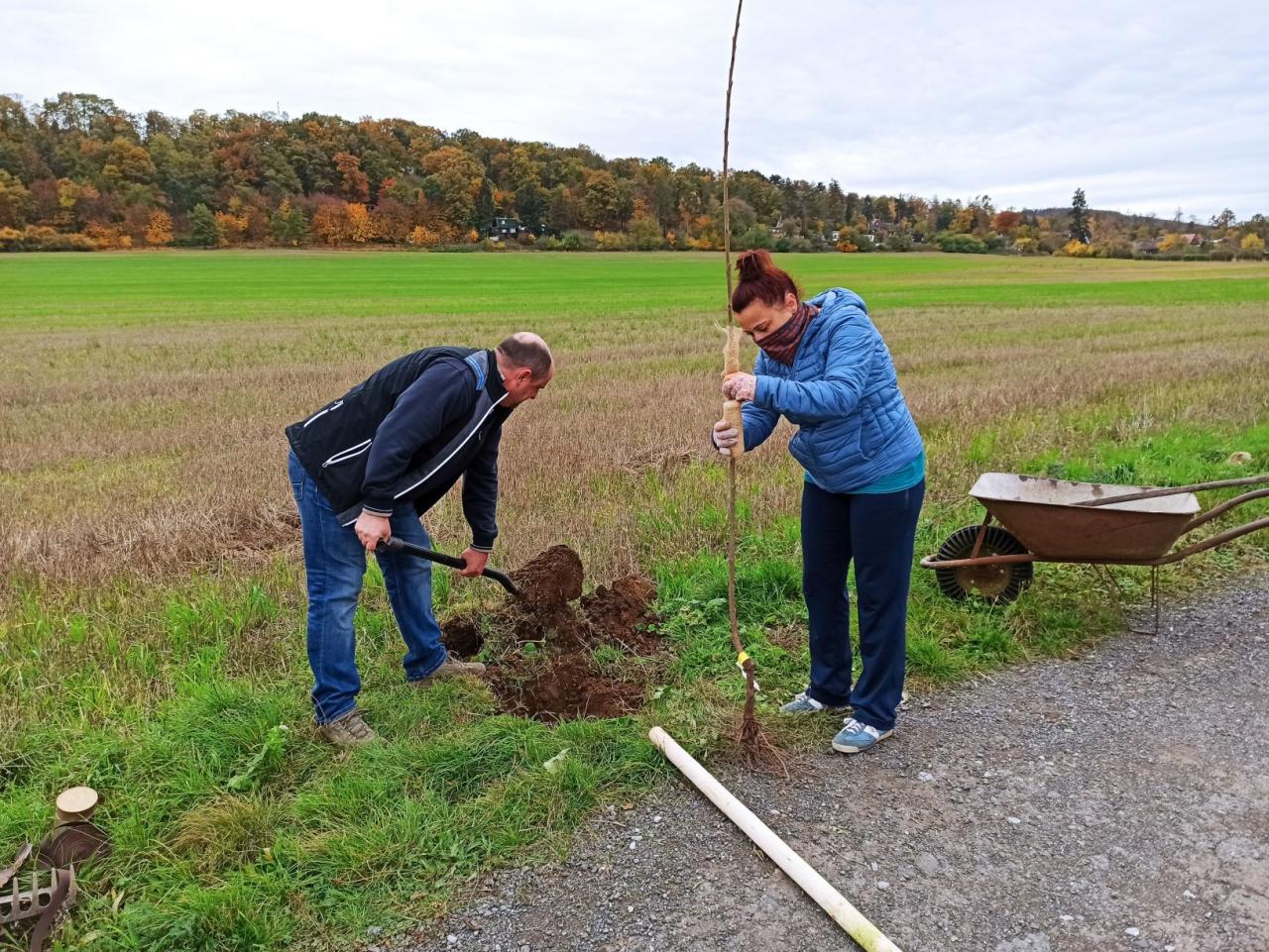 Na výsadbu dohlížel certifikovaný arboretista Jiří Řežábek, který bude pomáhat i s následnou péčí. Akce se povedla, i když jsme museli dodržovat přísná hygienická opatření. Výsadba probíhala v předem určených časových úsecích tak, abychom eliminovali nežádoucí kontakty. Stromy sázeli vždy jen členové jedné rodiny či osoby si navzájem blízké. Sice nás začátkem i koncem sázení provázel déšť, ten však alespoň podpořil uchycení stromků. Další zálivku obstarali techničtí pracovníci úřadu. 17. listopadu se sešlo dalších šest zájemců, na které se nedostala třešeň, a vysadilo zde jabloně. Zbývající jabloně, hrušně a javory pak vysadil pan Řežábek sám. Celkem bylo v rámci podzimní výsadby zasazeno 60 stromů.