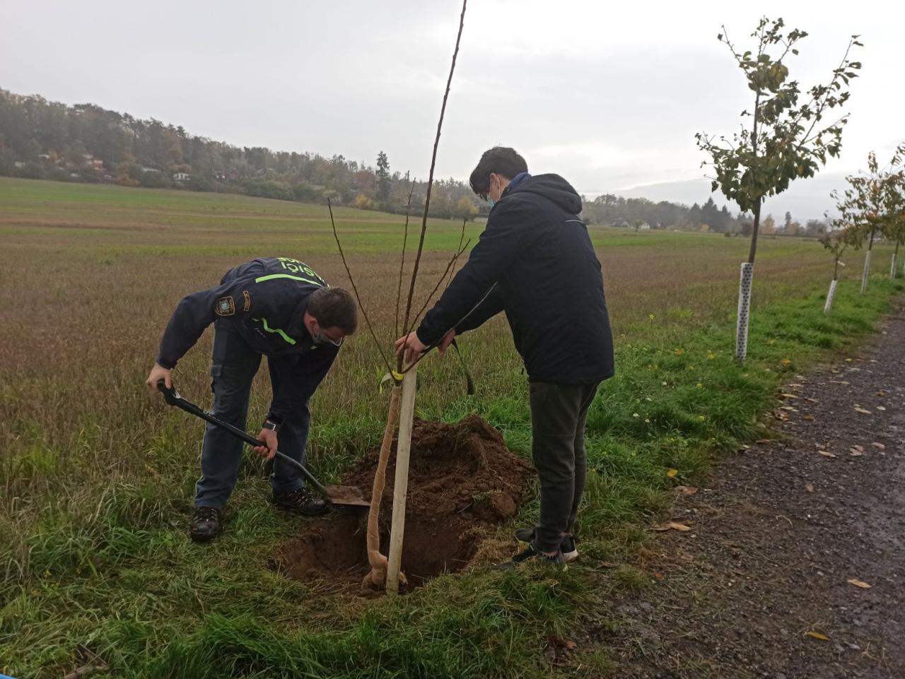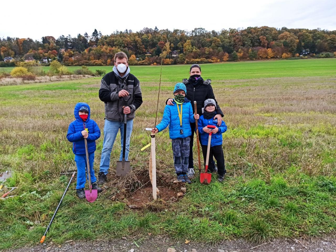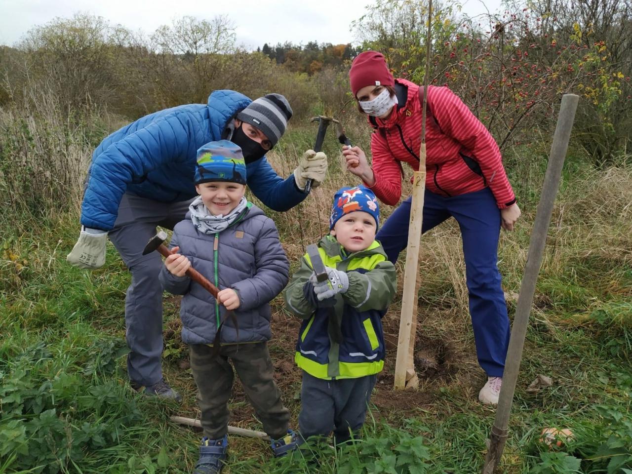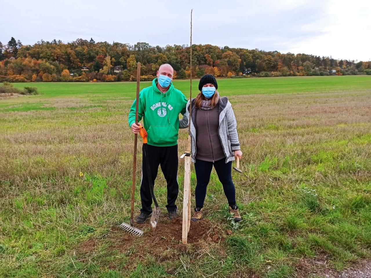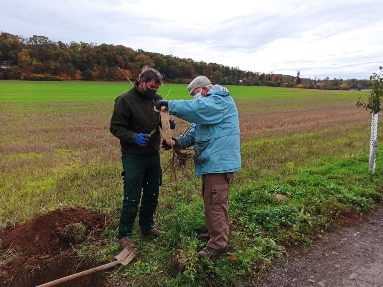 Na výsadbu dohlížel certifikovaný arboretista Jiří Řežábek, který bude pomáhat i s následnou péčí. Akce se povedla, i když jsme museli dodržovat přísná hygienická opatření. Výsadba probíhala v předem určených časových úsecích tak, abychom eliminovali nežádoucí kontakty. Stromy sázeli vždy jen členové jedné rodiny či osoby si navzájem blízké. Sice nás začátkem i koncem sázení provázel déšť, ten však alespoň podpořil uchycení stromků. Další zálivku obstarali techničtí pracovníci úřadu. 17. listopadu se sešlo dalších šest zájemců, na které se nedostala třešeň, a vysadilo zde jabloně. Zbývající jabloně, hrušně a javory pak vysadil pan Řežábek sám. Celkem bylo v rámci podzimní výsadby zasazeno 60 stromů.