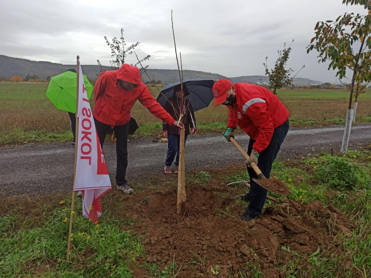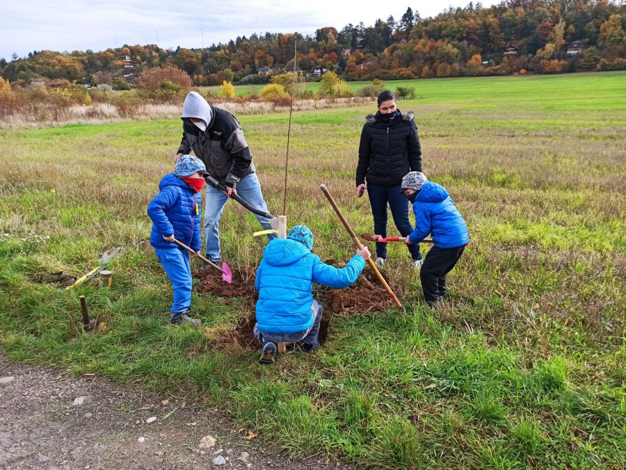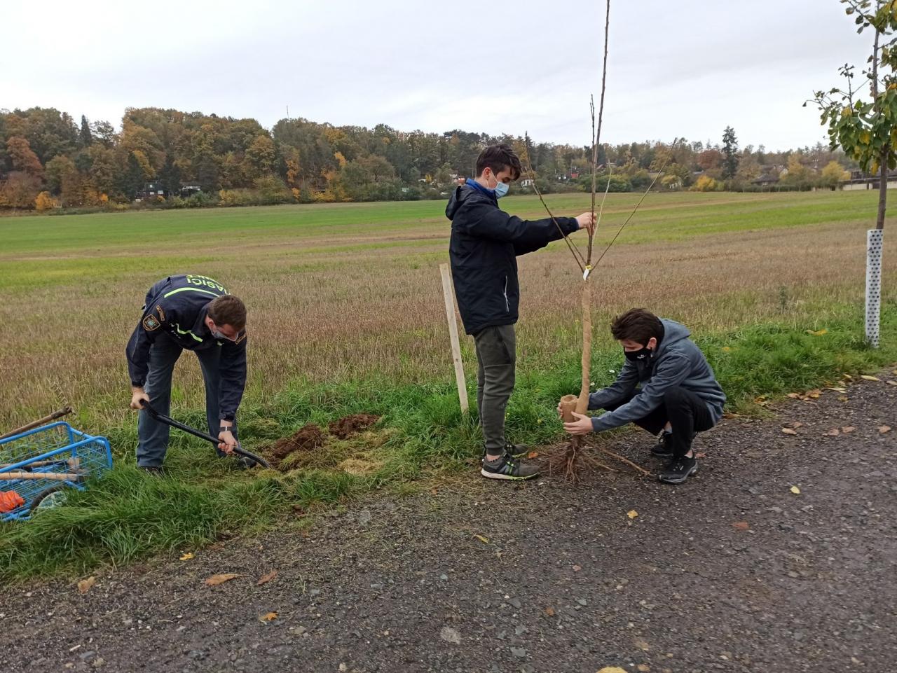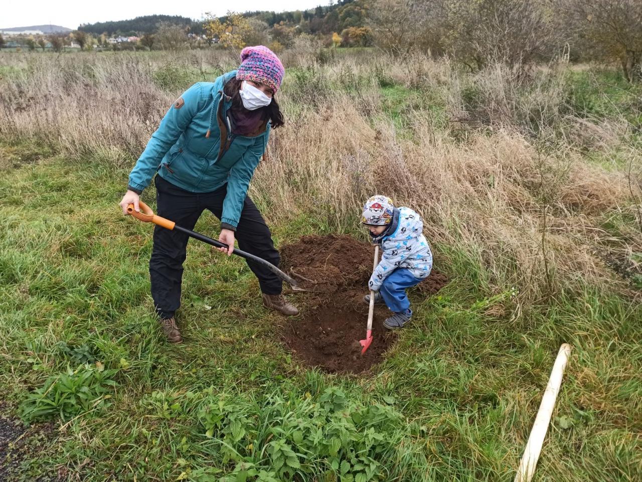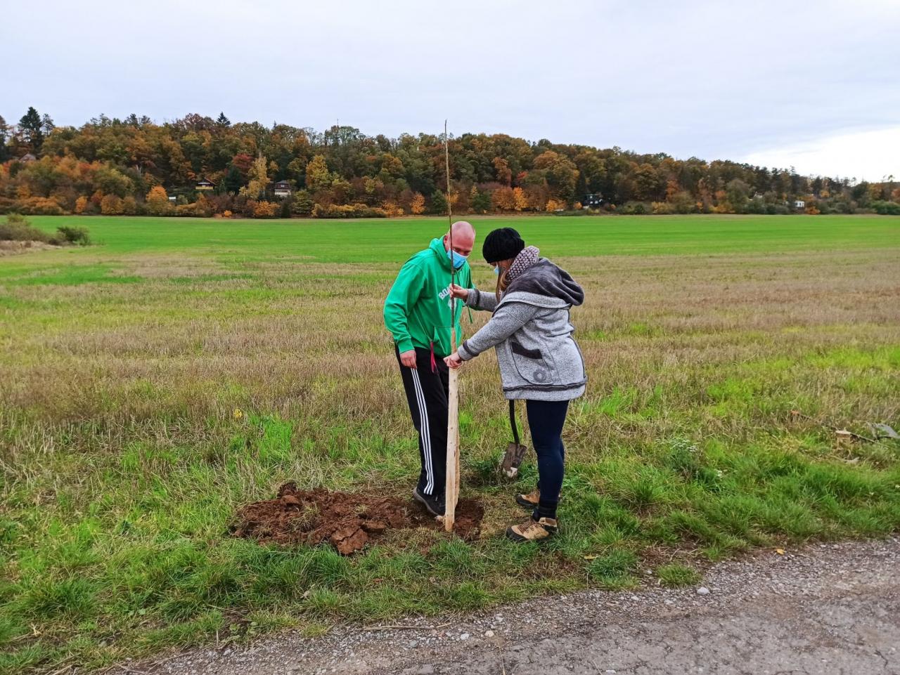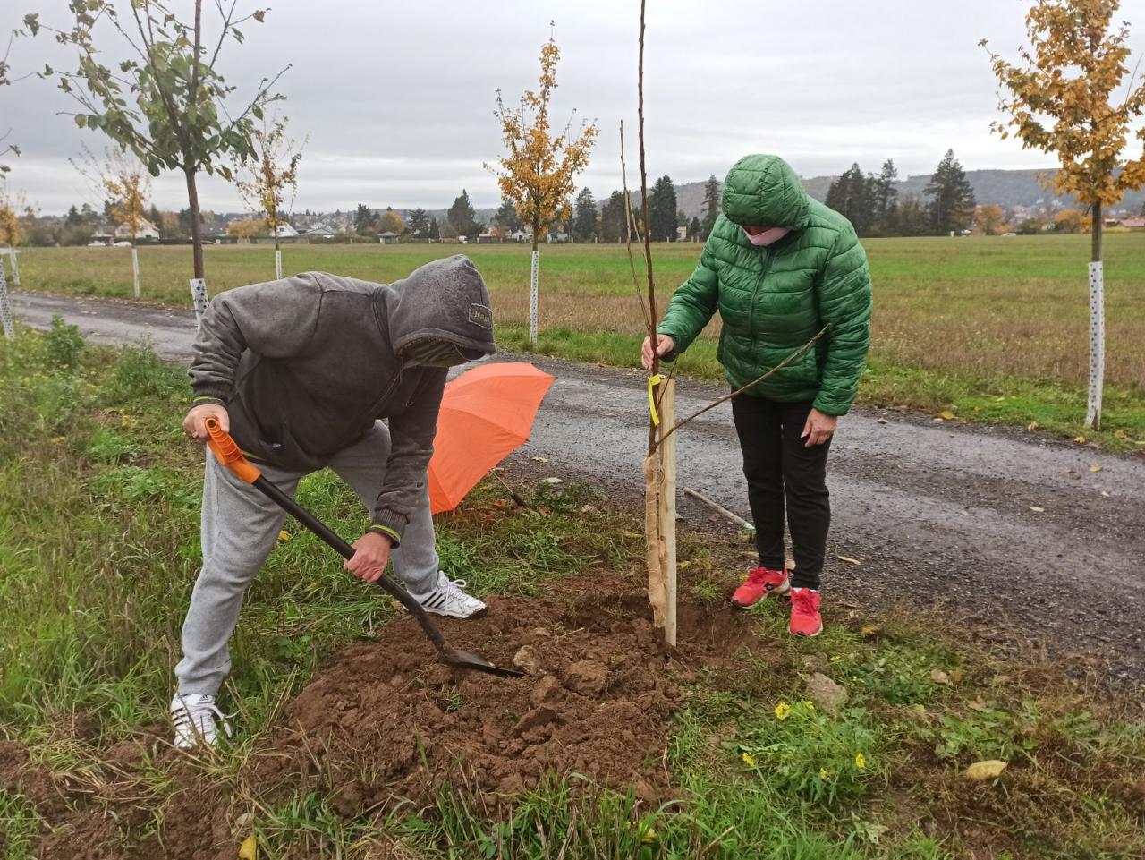 Na výsadbu dohlížel certifikovaný arboretista Jiří Řežábek, který bude pomáhat i s následnou péčí. Akce se povedla, i když jsme museli dodržovat přísná hygienická opatření. Výsadba probíhala v předem určených časových úsecích tak, abychom eliminovali nežádoucí kontakty. Stromy sázeli vždy jen členové jedné rodiny či osoby si navzájem blízké. Sice nás začátkem i koncem sázení provázel déšť, ten však alespoň podpořil uchycení stromků. Další zálivku obstarali techničtí pracovníci úřadu. 17. listopadu se sešlo dalších šest zájemců, na které se nedostala třešeň, a vysadilo zde jabloně. Zbývající jabloně, hrušně a javory pak vysadil pan Řežábek sám. Celkem bylo v rámci podzimní výsadby zasazeno 60 stromů.