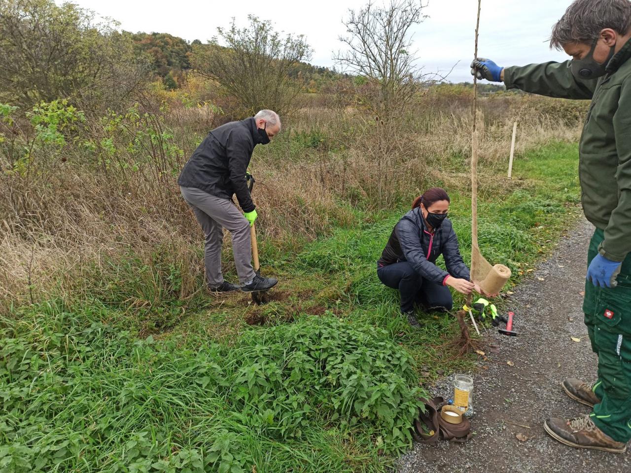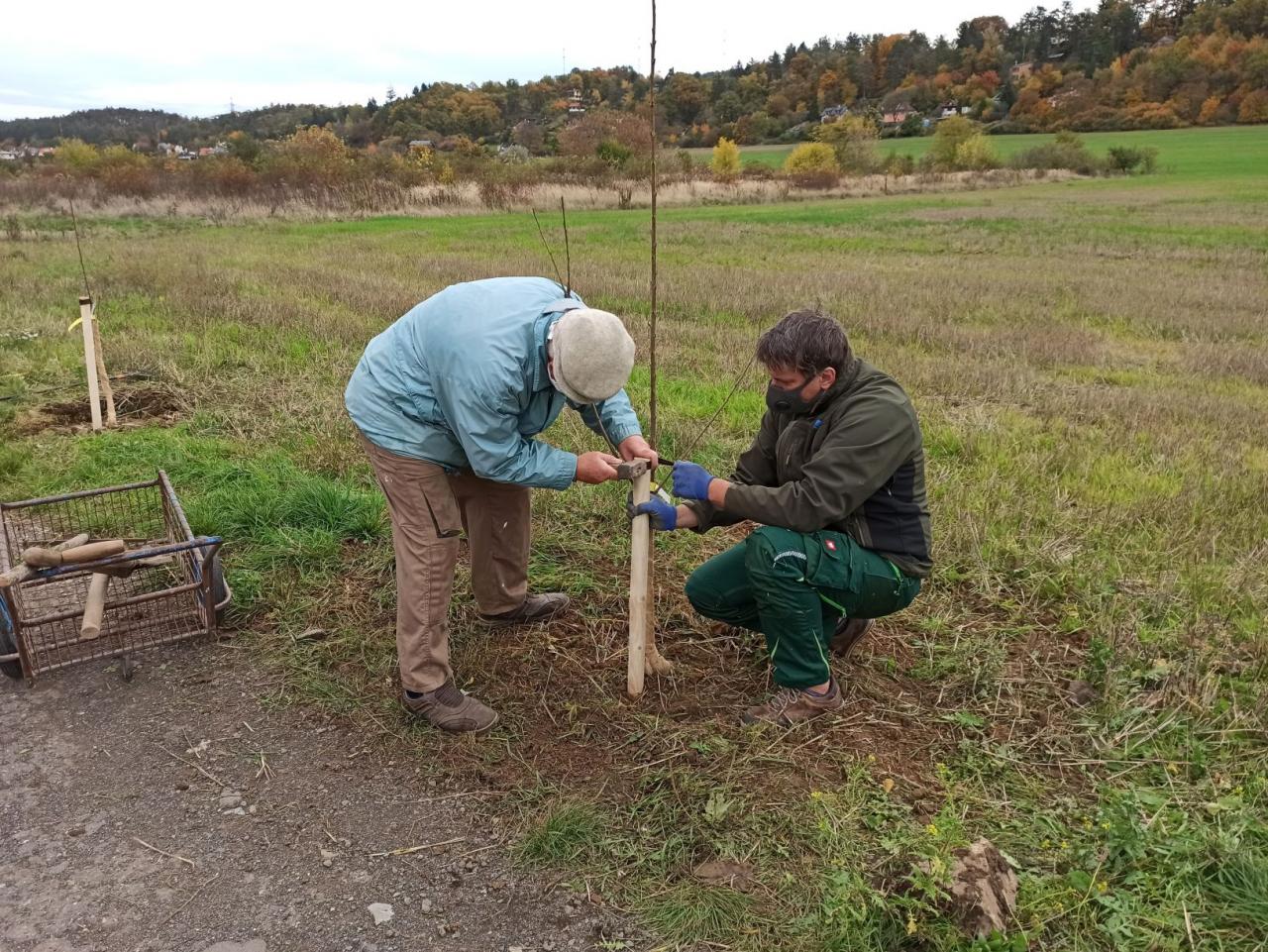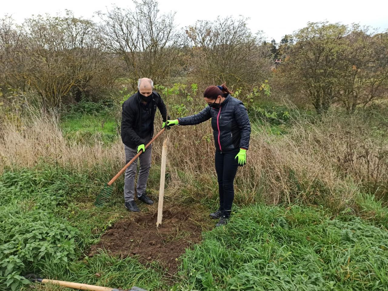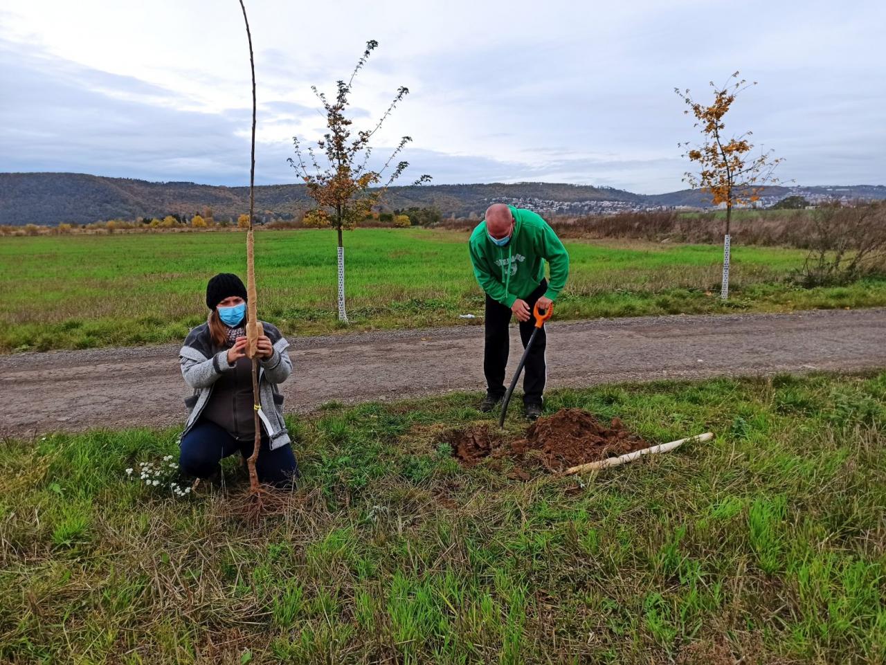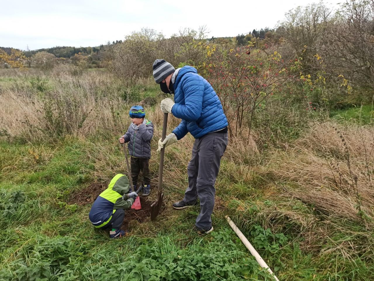 Na výsadbu dohlížel certifikovaný arboretista Jiří Řežábek, který bude pomáhat i s následnou péčí. Akce se povedla, i když jsme museli dodržovat přísná hygienická opatření. Výsadba probíhala v předem určených časových úsecích tak, abychom eliminovali nežádoucí kontakty. Stromy sázeli vždy jen členové jedné rodiny či osoby si navzájem blízké. Sice nás začátkem i koncem sázení provázel déšť, ten však alespoň podpořil uchycení stromků. Další zálivku obstarali techničtí pracovníci úřadu. 17. listopadu se sešlo dalších šest zájemců, na které se nedostala třešeň, a vysadilo zde jabloně. Zbývající jabloně, hrušně a javory pak vysadil pan Řežábek sám. Celkem bylo v rámci podzimní výsadby zasazeno 60 stromů.