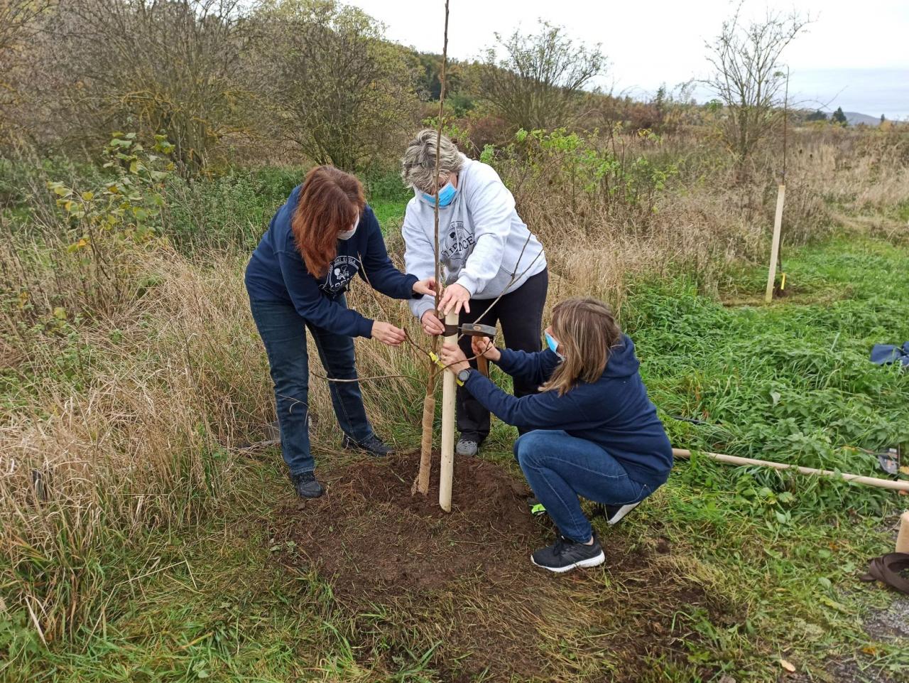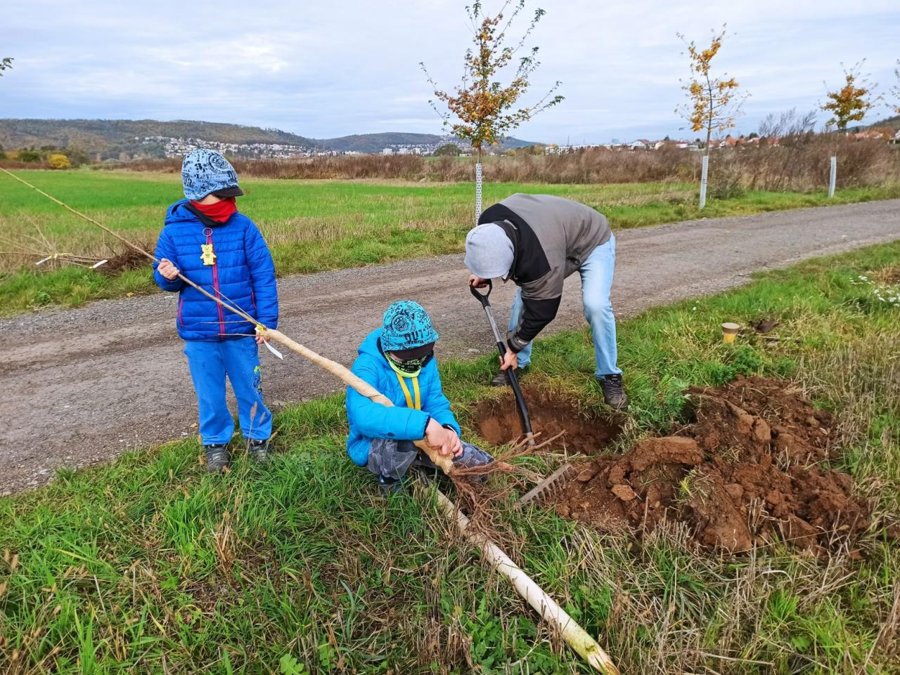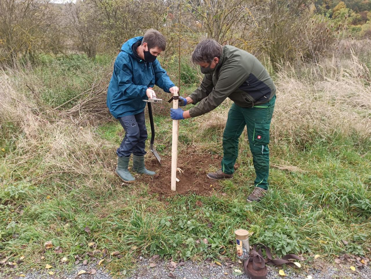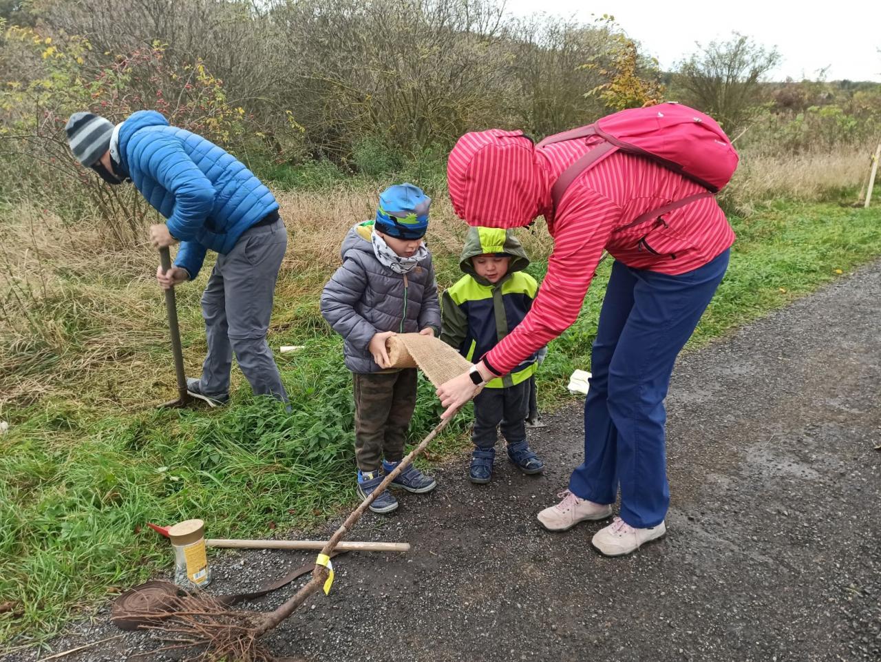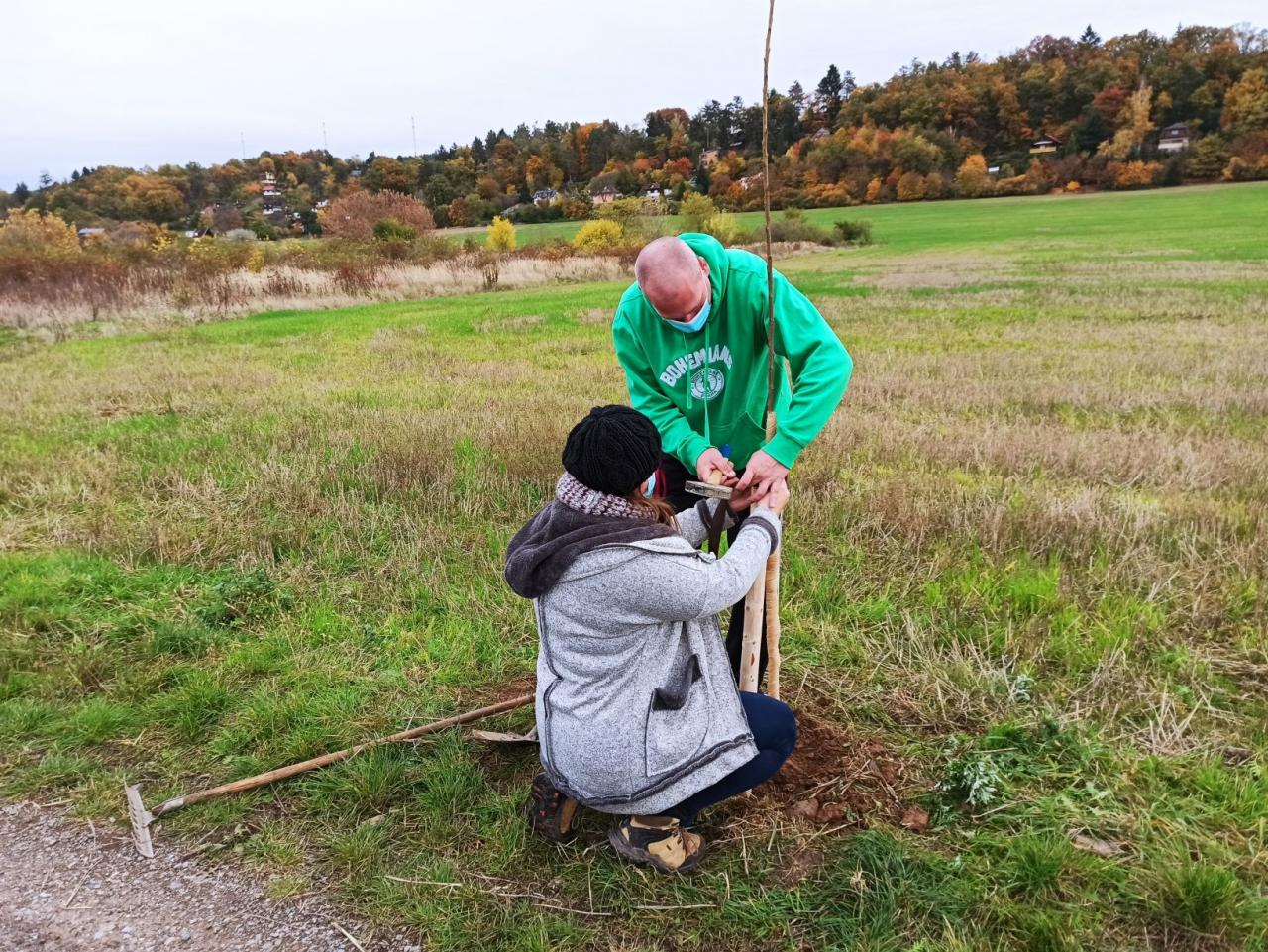 Na výsadbu dohlížel certifikovaný arboretista Jiří Řežábek, který bude pomáhat i s následnou péčí. Akce se povedla, i když jsme museli dodržovat přísná hygienická opatření. Výsadba probíhala v předem určených časových úsecích tak, abychom eliminovali nežádoucí kontakty. Stromy sázeli vždy jen členové jedné rodiny či osoby si navzájem blízké. Sice nás začátkem i koncem sázení provázel déšť, ten však alespoň podpořil uchycení stromků. Další zálivku obstarali techničtí pracovníci úřadu. 17. listopadu se sešlo dalších šest zájemců, na které se nedostala třešeň, a vysadilo zde jabloně. Zbývající jabloně, hrušně a javory pak vysadil pan Řežábek sám. Celkem bylo v rámci podzimní výsadby zasazeno 60 stromů.