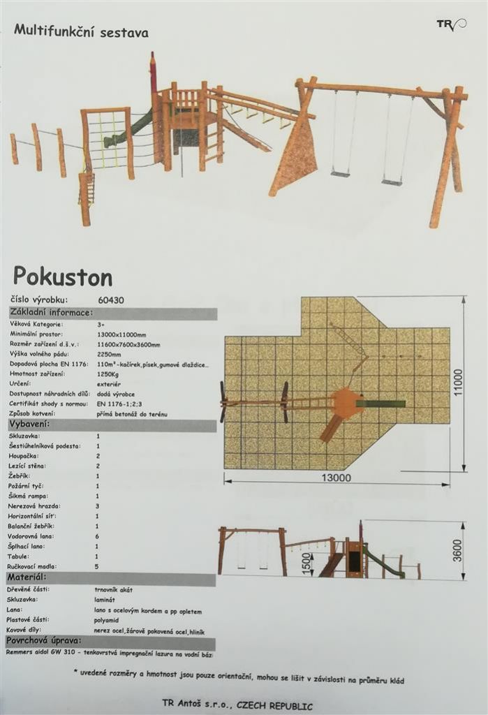 Posledním výběrovým řízením byl výběr dodavatele pro nové dětské hřiště. Celkem se přihlásili 3 účastníci a výběrové řízení vyhrála společnost TR - Antoš, s.r.o. z Trutnova za celkovou cenu 231.715 Kč s DPH. Můžeme se tak na jaře těšit na novou multifunkční herní sestavu Pokuston.